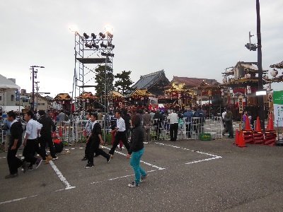 | 今年のお旅祭も、本蓮寺前の細工町交差点からお諏訪さんまでずーっと露店が並び たくさんの人波でにぎやかに開催されました。 5月7日の夕方からは細工町交差点に曳山全8基が集まり祭りは大変盛り上がりました。 細工町の子供獅子が本蓮寺庫裡玄関前で行われました。当寺の住職のご長男も今年から一員となり 可愛らしくしかも勇壮な舞を披露されました。 |